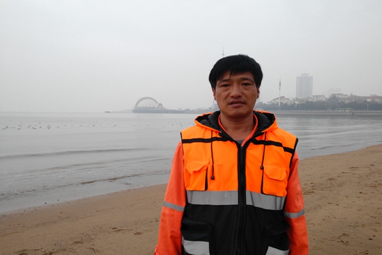 棧橋海水浴場毗鄰青島火車站和青島市著名景點棧橋,一年四季游客不斷,環境衛生保潔工作量大。無論嚴寒酷暑,還是雨雪風霜,作為保潔隊隊長的楊寶利,每天對棧橋海水浴場沙灘、水域和觀景平臺進行不間斷清理,總是最早到達,最晚離開。浴場水域有漂浮雜物時,他第一個駕船下海進行打撈。有時海面風浪較大,不適宜劃船,他則跳入齊腰深的海水中,頂著海浪進行清理。2008年至今,每年六七月份,大型滸苔災害會侵襲浴場,他都積極參與其中。2018年抗擊滸苔行動中,楊寶利曾與浴場干部職工先后連續6天6夜、6天5夜堅守崗位,只為盡早將滸苔清理完畢,為市民、游客打造一個干凈整潔的浴場環境。