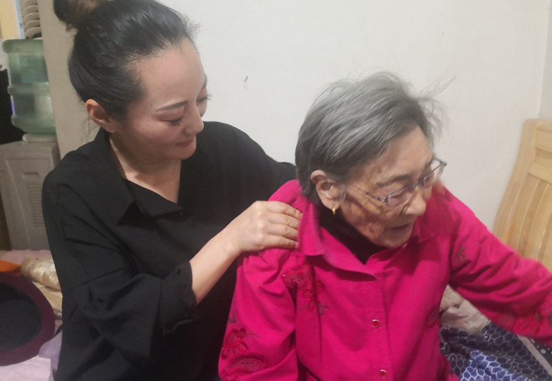 20111220日那天,公公突然病危,她坐在公公的床前,緊緊握著公公的手,當時公公的意識特別的清醒,雖然已經說不出話了,但還是“啊、啊”的自己要衣服穿,當衣服穿好了,公公的嘴巴張了張就永遠地閉上了眼睛,走得非常安祥。