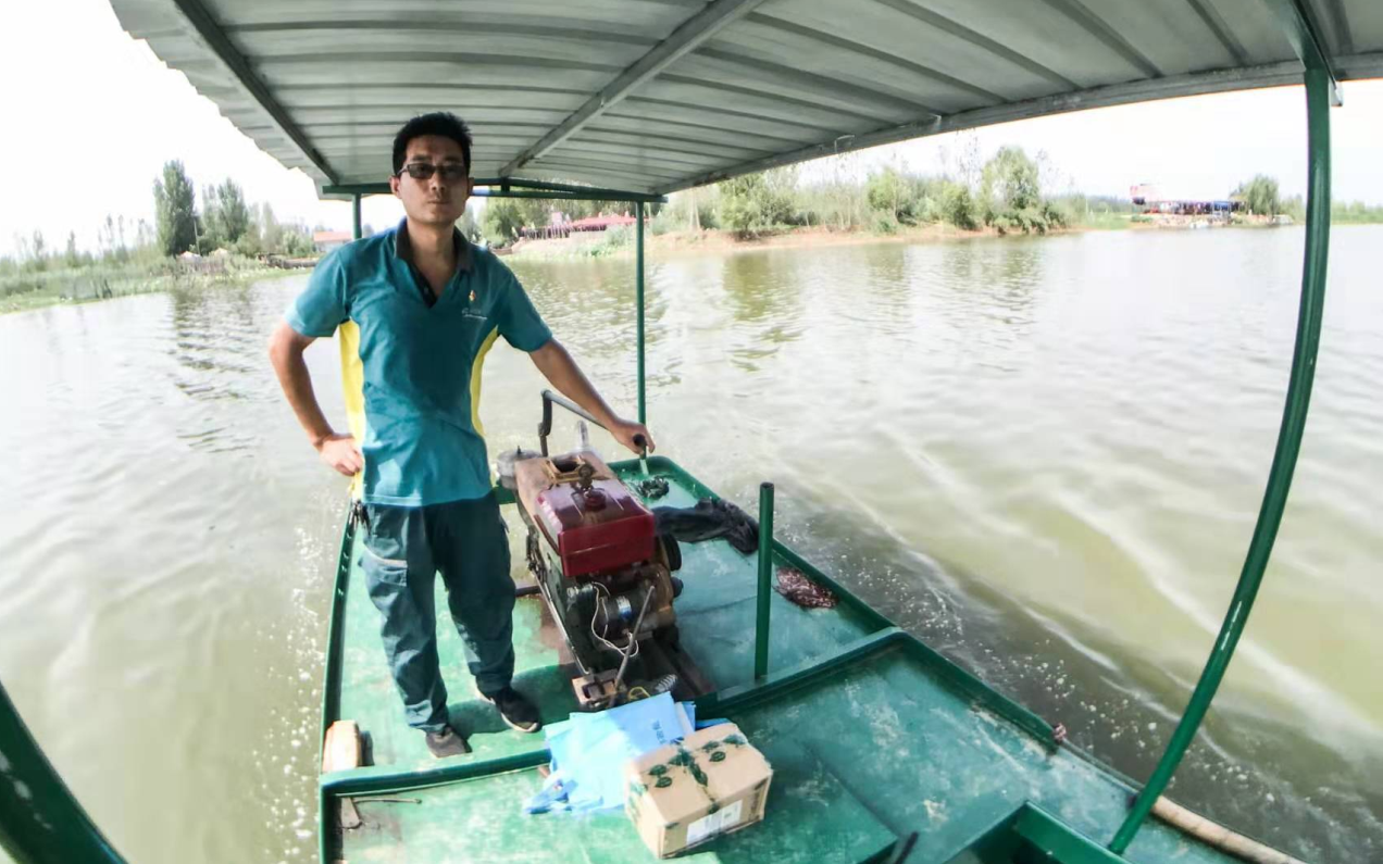 與山東省內其他郵政支局不同,微山縣郵政分公司南陽支局位于南四湖中的南陽島上,這里四面環水,進出都靠船只。王少朋每天投遞的線路上看似只有7個村莊,但這7個村都位于南陽島四周的小島上,中間隔著寬闊的水面,一圈走下來60多公里,其中水路大約45公里,需要七八個小時的時間。