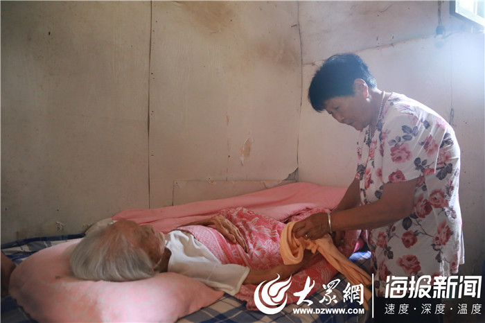殷焦氏躺著的床旁邊還放置著一張小床,據了解,另一張床是殷焦氏大女兒殷素蘭休息的地方。她23歲時逃荒嫁在哈爾濱市,養育4個女兒,2013年殷焦氏臥倒在床,為了照顧殷焦氏,殷素蘭在家人大力支持下,毅然回到娘家常住,擔起了照顧母親的重擔。清理便盆、喂飯、擦洗、聊天、推著輪椅出去遛彎……已經成為了殷素蘭的生活習慣。
