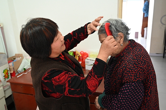 幾年前,村里蓋起了公寓樓,尚愛英并沒有像其他人一樣搬到樓上去住,而是留在了老房子里專心照顧婆婆,她說:“雖說搬到樓上去住生活環境可能會好不少,但是我婆婆年齡這么大,行動又不方便,所以我就跟家里人說留下來專門照顧老人,家里人也挺支持我的。”