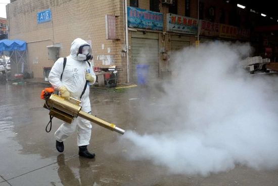 市中藍(lán)天應(yīng)急救援隊隊長馮琦馳援湖北武漢,赴疫區(qū)一線開展消殺作業(yè)。