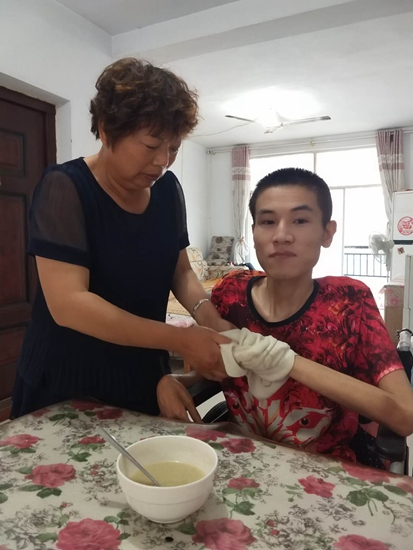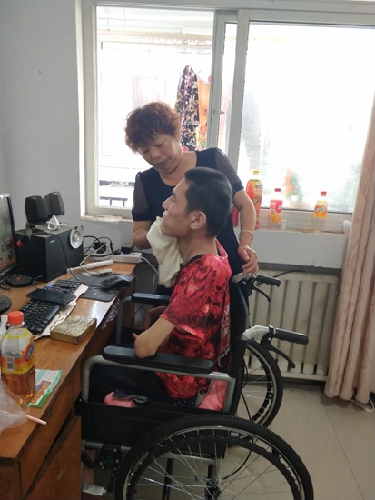 不離不棄,悉心照顧兒子的偉大母親。在多年的尋醫(yī)問藥的過程中,馬會(huì)芳和兒子也慢慢接受了這個(gè)殘酷的現(xiàn)實(shí),母子倆決定勇敢地面對現(xiàn)實(shí),樂觀地面對生活。為了不讓兒子感到生活苦悶、無聊,馬會(huì)芳省吃儉用,為兒子買了一臺(tái)電腦,兒子也慢慢地學(xué)會(huì)了使用電腦。小元在患病之初就非常的懂事,怕母親太辛苦,就不吃太多的飯,不喝太多的水,只為減少上廁所的次數(shù)。小元只上到小學(xué)三年級,很多字還不認(rèn)識(shí),他就讓母親買了一本新華字典,用僅能抬起的一首手翻看字典,如今這本字典不知被小元看了多少遍。自從9年住進(jìn)樓房以后,小元沒有下過一次樓,每天都是母親喂飯,母親攙扶著去衛(wèi)廁所,日復(fù)一日,年復(fù)一年,這樣的生活情景,在馬會(huì)芳看來,再平常不過了。每當(dāng)馬會(huì)芳想起來兒子的病情的時(shí)候,她背著兒子不知道流下了多少淚水,作為母親的她深知,只有她堅(jiān)強(qiáng)了,兒子才有繼續(xù)活下去的信心和決心。兒子患病的這18年,她舍不得多花一分錢,每次看到兒子痛苦表情的時(shí)候,她恨不得自己去替兒子承受這一切,能夠讓兒子重新站起來,是她最大的心愿了。今年29歲的小元,在母親的精心照料下,生活的很幸福、很快樂。馬會(huì)芳用愛創(chuàng)造了一個(gè)生命奇跡,用18年的堅(jiān)守詮釋了母愛的偉大。