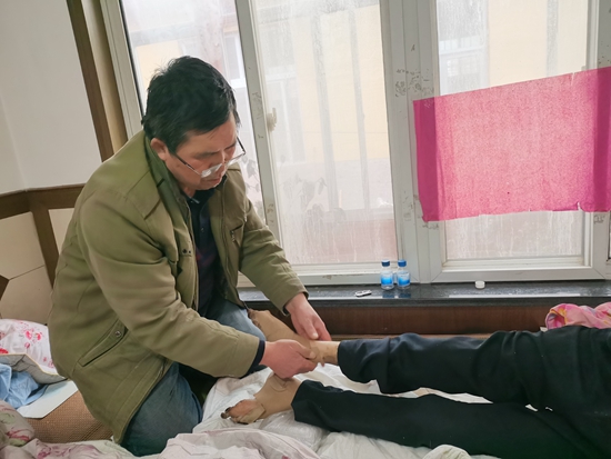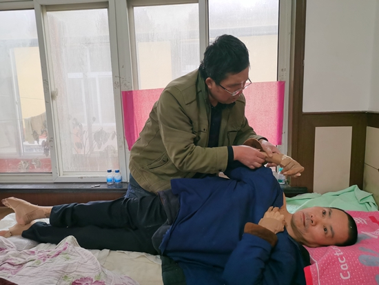馬永芹給弟弟按摩腳部
