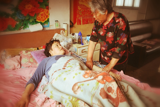 這些年來,劉洪蘭既要為兒媳端吃送喝,又要照看年幼的孫女。為防止兒媳生褥瘡,劉洪蘭就給兒媳翻身,活動四肢,做做按摩。因為兒媳大小便失禁,劉洪蘭還要幫兒媳處理大小便,“大冬天拉在棉褲里,給她脫的時候整條腿都是,把腿擦干凈了再給她洗棉褲。也生氣啊,可是生氣能有什么辦法!闭f到這,劉洪蘭一臉憨實的笑容。