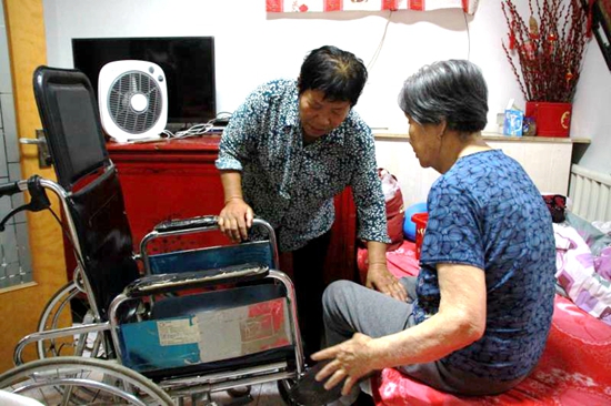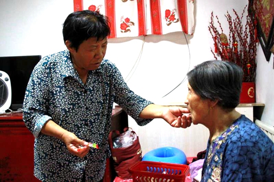 6年前,婆婆安玉桂患上了腦血栓,患病第二天不小心跌了一跤,把右腿骨頭跌壞了,從此就再也不能自己下地走過,只能坐輪椅,彼時的崔合倫也患了直腸癌,動了一場大手術,腹部造瘺掛袋,兩天一換,十分遭罪,身體也大不如以前,再加上家里還有98歲的老母親需要照顧,崔合倫仍然沒有拋棄自己的婆婆,侍奉婆婆穿衣吃飯,端屎端尿?粗藓蟼惸敲蠢,婆婆也很是心疼,實在是不忍心兒媳這么辛苦,主動提出去閨女家住幾天,讓媳婦也好好休息休息?墒菦]多久,崔合倫就又把婆婆接回家來照顧。“俺跟俺婆婆就跟親媽一樣,跟小姑子們也像親姐妹一樣好!贝藓蟼愓f,現在和小姑子們一起輪流照顧,但是婆婆還是喜歡在自己家,與她“母女”兩個相伴。