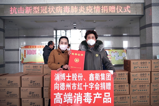 隨著新型冠狀病毒疫情形勢愈發嚴峻,疫情防控一線消毒物資嚴重緊缺,山東消博士公司先后20余次向新疆生產建設兵團、山東預備役保障旅、山東省紅十字會、濟南慈善總會、廣州海關、駐德空軍某部、德州市紅十字會等單位捐贈多批醫用消毒物資,捐助物資總價值220余萬元,面對學生開學在即的情況主動捐贈“開學季”防疫助學消殺產品助力莘莘學子開學復學。他用實際行動積極踐行了作為國內知名高端消毒產品制造企業家的使命與擔當。“作為一名共產黨員,在這關鍵時刻,我們都應該發揮先鋒模范作用,共同攜手戰勝疫情。”王金強說。