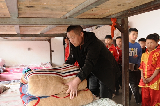河南臺前的田慶超,在很小的時候,媽媽就去世了。顏廷龍還記得,孩子父親送慶超到武校時,慶超只有6歲,大冷天只穿著單薄破舊的衣服,小臉小手凍得通紅。慶超父親把他留在武校就找了個理由離開了,從此再也沒有回來,也沒有給孩子交過一次費用。每年春節,學校里的孩子陸陸續續被父母接走,慶超沒有人來接,這個時候,顏廷龍總會把孩子帶到自己家里過年。一次,六一兒童節,慶超告訴校長,想家了,想爸爸了。顏廷龍為了滿足孩子的心愿,驅車帶他回家。到家后,卻發現大門緊關,鎖都生銹了。顏廷龍通過打聽,找到了慶超的奶奶。奶奶見到孫子后,一時沒有反應過來,等認出后連連驚嘆:“慶超長高了,長胖了,長成大小伙子了!”奶奶通過鄰居把慶超家的門打開,院里雜草叢生,已經很久沒有住過人了。奶奶無力撫養慶超,含淚對他說:“孩子,你師父人好,管你吃住,還教你練武,以后你跟著師父好好練。”慶超回答:“奶奶,師父對我很好,我一定跟著師父好好練!”回到武校之后,慶超刻苦練武,變得更加用功。