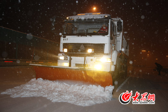 大眾網濟南12月21日訊(記者 王磊 通訊員 邵帥)昨晚8點,濟南城管機掃大隊全員到崗,全面展開清雪工作,4臺撒布車分別開往順河高架、燕山立交、北園高架、緯六路高架開始作業,清雪工作拉開序幕,一直持續到今天上午10點,連續作業14個小時,確保道路無結冰。