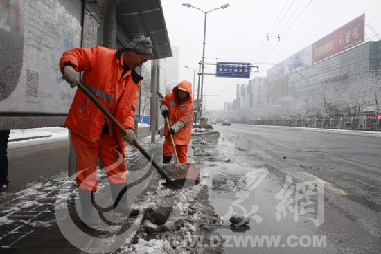 據(jù)濟南城管保潔處有關(guān)負責人介紹,從20日夜至21日早6點,全市共出動保潔員和城管人員萬余人,出動灑水車,撒布機等各類作業(yè)車輛1342車次,使用融雪劑362噸,其中干撒168噸。