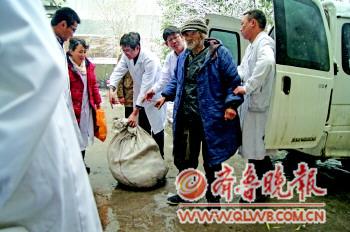 ▲21日,來自河北廊坊的一對父子接受救助,被送往濟(jì)南市精神衛(wèi)生中心。 本報(bào)記者 張榕博 攝