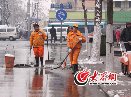 保暖內(nèi)衣、毛衣、棉襖、毛襪子……氣象預(yù)報(bào)說(shuō),21日白天的氣溫將降至零下2度,張清朝和張國(guó)敏幾乎把家里最保暖的衣服都套在了身上,他倆人手一把單位新發(fā)的清雪鏟、一把掃帚和一個(gè)垃圾桶,在從濼源大街東頭往西至中銀大廈這段百余米的馬路上,不到4點(diǎn)就投入到了清雪的“戰(zhàn)斗”中。