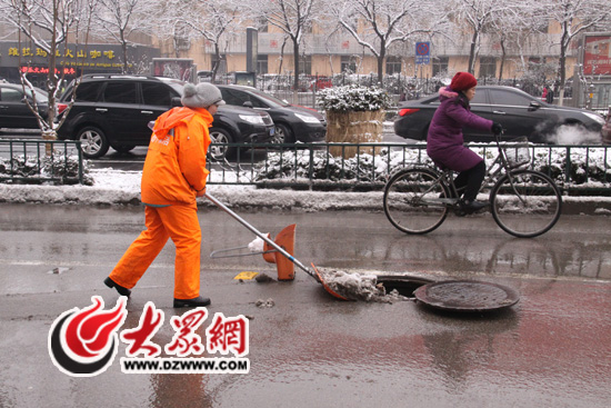 21日凌晨3點(diǎn)半,濟(jì)南下了一夜的大雪仍沒(méi)有停的意思,家住十畝園附近的環(huán)衛(wèi)工張清朝和張國(guó)敏夫妻倆已在趕往上班的路上了,按照20日晚7點(diǎn)城管部門(mén)下達(dá)的大雪應(yīng)急預(yù)案,濟(jì)南全市環(huán)衛(wèi)工必須在清晨4點(diǎn)前到崗,開(kāi)始清掃路面的積雪,保證清晨市民出行時(shí)道路暢通。