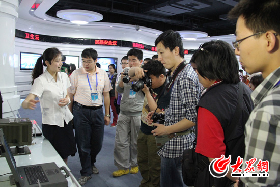 [提要] 13日下午,“科學發展新山東----第八屆中國網絡媒體山東行”采訪團來到位于濟南經十東路的浪潮科技園。在浪潮云計算創新中心,記者們親身體驗了衛生云、媒體云等多種云計算應用給人們生活帶來的神奇改變,這些看得見、摸得著的“云”讓許多記者感嘆科技創新的獨特魅力,從云計算到云服務,浪潮讓“浮云”落地了。