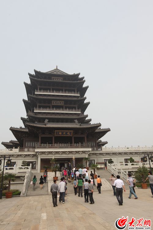 采訪團前往大名湖超然樓。(盛堃 攝)
