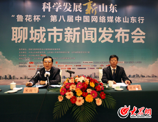 聊城市委書記、市人大常委會主任宋遠方出席科學(xué)發(fā)展新山東——“魯花杯”第八屆中國網(wǎng)絡(luò)媒體山東行聊城市新聞發(fā)布會。(盛堃 攝影)