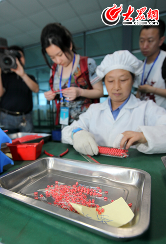 采訪團記者在生產車間內參觀采訪。(盛堃 攝影)