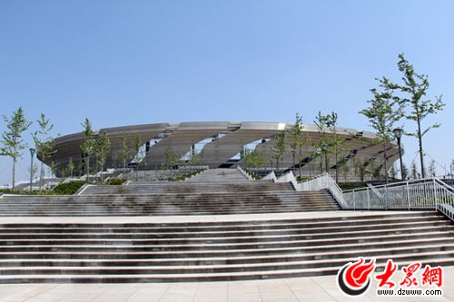 在離文登市體育公園還有幾百米的時候,記者們就對著前方的銀白色圓形建筑物發出感嘆:“快看!那個建筑真漂亮!”文登市城鄉建設局的孫丹丹笑著告訴大家,這座建筑就是文登市體育公園,而它的設計單位就是奧運場館“鳥巢”的中方設計單位——中國建筑設計院設計的。
