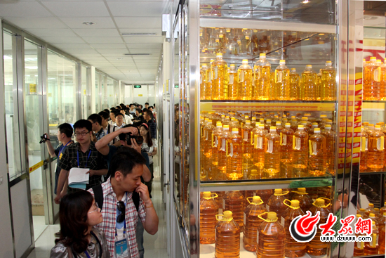 科學發展新山東——“魯花杯”第八屆中國網絡媒體山東行采訪團走進魯花集團參觀采訪。 (馬鑫 攝)