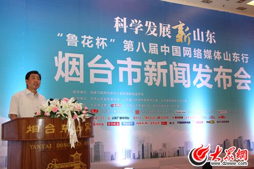 煙臺市副市長于松柏出席煙臺市新聞發布會并致辭。(馬鑫 攝)