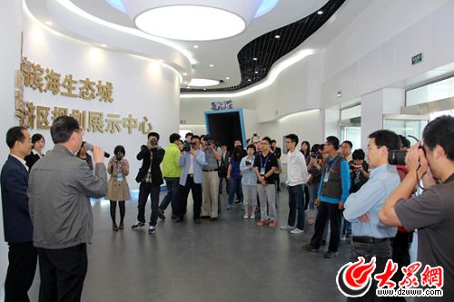 采訪團在牟平參觀煙臺東部濱海生態城展示中心 記者 馬鑫 攝