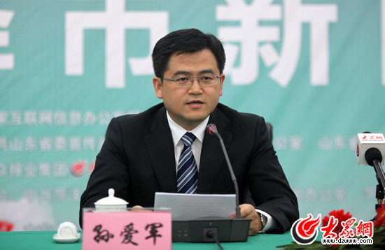 菏澤市委副書記、市長孫愛軍出席科學發展新山東——“魯花杯”第八屆中國網絡媒體山東行菏澤市新聞發布會。(盛堃 攝影)