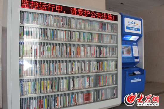 位于文登市民文化中心的24小時自助借書器。(馬鑫 攝)