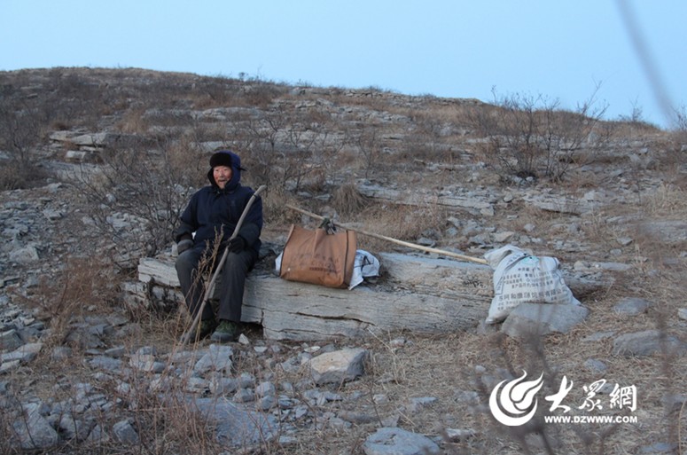 在大嶺山半山腰,老人第一次放下擔子休息,屁股下的那塊大石頭是老人每次經過的歇腳點。