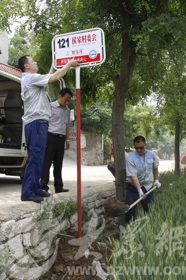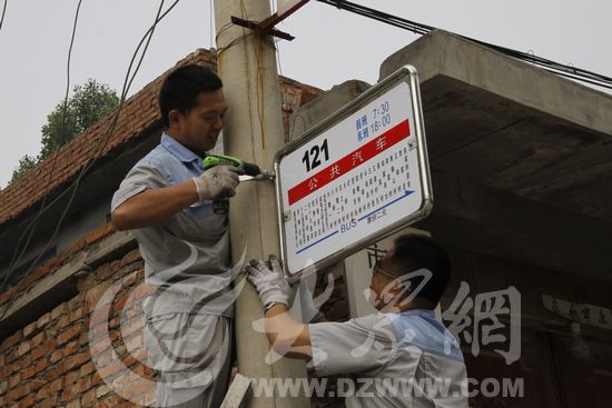 今天中午,隨著侯家村委會的站牌安裝在了侯家村村口,121路公交沿線的28個(gè)站點(diǎn)的公交站牌安裝完畢。記者 張帆 攝