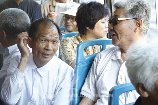 因為同乘一趟公交車,很多乘客慢慢熟悉了起來,大家在一起聊著村里的故事。記者 張帆 攝