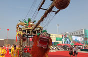 8:50左右,參加第二屆中國非物質(zhì)文化遺產(chǎn)博覽會開幕式的領(lǐng)導(dǎo)和嘉賓乘船到達(dá)臺兒莊古城的運河碼頭,早已迎在碼頭的舞龍隊舞動著兩條巨龍引導(dǎo)著領(lǐng)導(dǎo)和嘉賓走向非遺博覽園。此時,城門之外,舞龍隊和舞獅隊開始起舞,打開一道道門,迎接領(lǐng)導(dǎo)的到來。