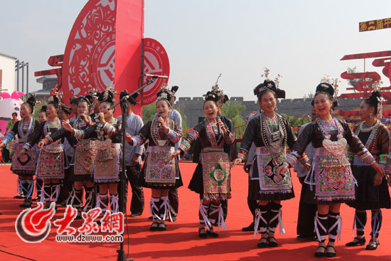 非博會正式開幕后,現場進入非遺表演展示階段。來自棗莊本地的吹打樂、河北的滄州舞獅、貴州的侗族大歌等非遺節目輪番上映,啟動儀式隨之進入高潮。
