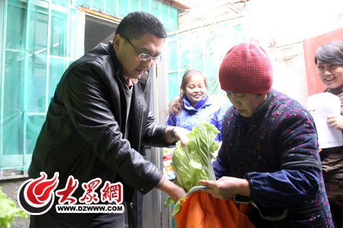 考慮到一些困難家庭運菜不方便,除了給到現場的困難居民分發大白菜外,大眾網記者和街道辦事處的負責人還專程上門,為一些困難居民送上了愛心白菜。