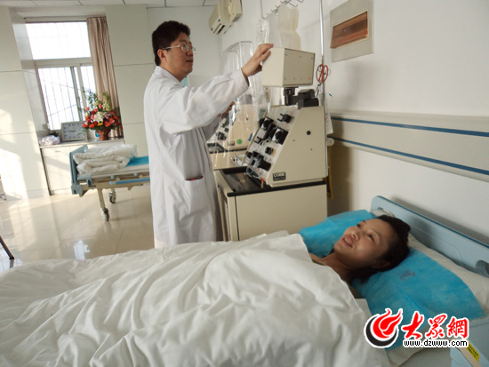 醫(yī)生在為呂明玉做淋巴性干細(xì)胞懸液采集