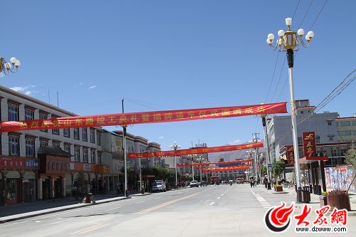 [提要] 6月10日,山東省第六批援藏投資最大項目日喀則山東路改造建設工程全面竣工,一條富有濃郁民族特色和現代化氣息的“景觀走廊”呈現在日喀則市民面前。竣工典禮上,日喀則市山東路上掛有“感謝山東人民無私援助”的橫幅隨風招展,廣大藏族群眾跳起歡快的民族舞蹈。