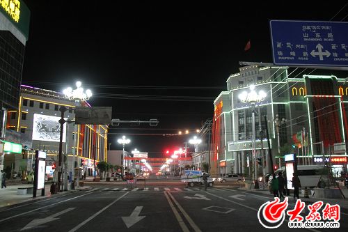 改造建設后的日喀則市山東路夜景。