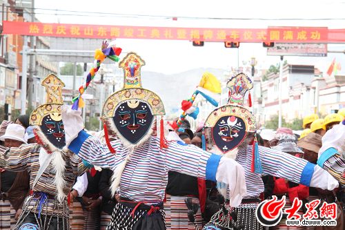 大眾網日喀則6月10日訊(記者 曲濤) 6月10日,山東省第六批援藏投資最大項目日喀則山東路改造建設工程全面竣工,一條富有濃郁民族特色和現代化氣息的“景觀走廊”呈現在日喀則市民面前。竣工典禮上,日喀則市山東路上掛有“感謝山東人民無私援助”的橫幅隨風招展,廣大藏族群眾跳起歡快的民族舞蹈。