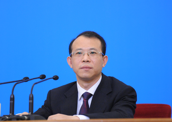 2012年3月2日15時,全國政協十一屆五次會議新聞發布會在人民大會堂三樓金色大廳召開,大會新聞發言人趙啟正向中外媒體介紹本次大會有關情況,并回答記者提問。圖為全國政協辦公廳新聞局局長張敬安。陳競超 攝