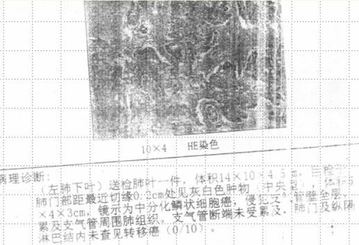 患者王某某,男,74歲,于200912月在濱州醫學院附屬醫院行左肺下葉占位切除術,術后病理提示為“中分化鱗狀細胞癌”侵犯支氣管壁全層,累及支氣管周圍肺組織。術后化療4個周期,局部放療30次(具體方案及劑量均不詳),2011年病灶局部復發,口服“特羅凱”“康力欣”等無效,于201251日復查肺CT示:心包積液,左側包裹性胸腔積液,后縱膈結節影,右側少量積液。經采用“中醫調胃、強腎、止血、化巖法”治療1個月,胸腔積液完全消失,心包積液明顯減少,未出現新癌灶。
