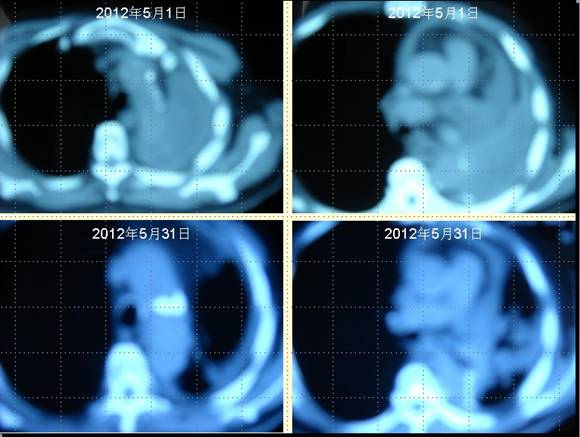 肺癌王XX采用 “董氏治癌法”治療前后CT對照變化