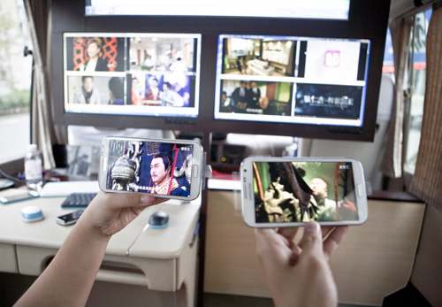 在青島316路公交車上,乘客可以邊乘車邊4G上網