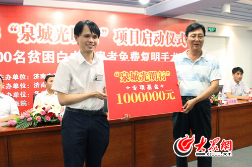 由濟南市殘疾人福利基金會、大眾網(wǎng)聯(lián)合主辦的“泉城光明行”活動第四期在濟南愛爾眼科醫(yī)院正式啟動。即日起至今年10月15日,活動將幫助濟南市1000名貧困白內(nèi)障患者重見光明。