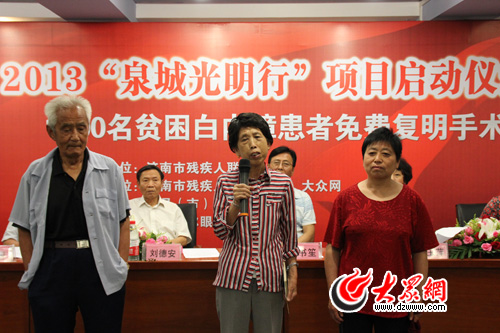 為幫助濟南市貧困白內(nèi)障患者重見光明,濟南市殘疾人福利基金會早在2010年便啟動首期“泉城光明行”活動,為濟南市200名白內(nèi)障患者實施了免費手術(shù)。2011年,第二期活動將救助名額增至500人。截止2012年底,“泉城光明行”活動已成功開展了三期,累計幫助1000多名貧困白內(nèi)障患者免費實施了復(fù)明手術(shù)。為了讓更多的貧困白內(nèi)障患者從中受益,第四期“泉城光明行”項目免費手術(shù)名額定為1000人。
