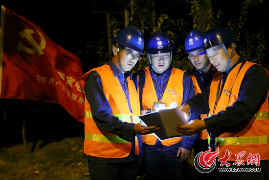 濟(jì)南公司輸電運(yùn)檢室彩虹黨員服務(wù)隊(duì)隊(duì)員夜間對(duì)220kV清高線進(jìn)行線路巡視