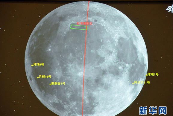 北京航天飛行控制中心的大屏幕上模擬顯示的月球表面情況