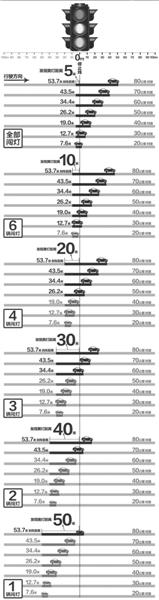 昨天上午10點多,DCCI互聯網數據中心在其新浪官方微博上,用圖表的方式發布了一組數據。數據稱,7組司機按時速80到20公里限速行駛,發現黃燈踩剎車到制動力完全發揮,平均反應時間近1秒,剎車距離結果為:以7組司機按80到20公里限速行駛,距離5米時,全部車輛都會闖黃燈;距離10米時,只有車速最低的一輛車能停住;距離20米時,車速較低的3輛車可以停;40米時,車速較低的5輛車能停;50米時,車速較低的6輛車能停住,但時速80公里的車仍然會闖黃燈。