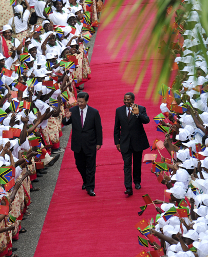 習近平表示,坦桑尼亞是中國的老朋友、好朋友,中坦友誼是由毛澤東主席、周恩來總理和尼雷爾總統等兩國老一輩領導人親手締造的。中坦一直保持全天候友誼。一踏上這片美麗的土地,我們就被坦桑尼亞人民對中國人民的友好情誼所包圍。中方珍視中坦友好這份寶貴歷史財富,愿同坦方一道努力,構建和發展互利共贏的全面合作伙伴關系,將中坦關系提升到更高水平。