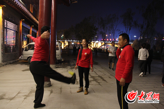 24日的晚上秋高氣爽,“多彩十藝·文化山東—全國網(wǎng)絡(luò)媒體行”采訪團(tuán)記者來到位于青州宋城的非遺文化展示一條街,在這條長長的古街上布滿了山東快書、青州挫琴、滿族八角鼓、青州花毽等17項(xiàng)非物質(zhì)文化遺產(chǎn)保護(hù)項(xiàng)目的展演臺,每個(gè)展臺前藝人們都向游客展示和表演獨(dú)具特色的非物質(zhì)文化遺產(chǎn),形成了一道獨(dú)特的風(fēng)景。