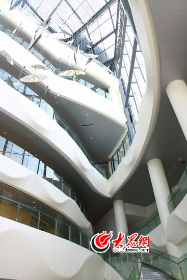 大眾網(wǎng)煙臺(tái)9月26日訊(記者 張帆 見(jiàn)習(xí)記者 馬俊驥)牟平區(qū)沁水河畔西側(cè)的廣場(chǎng)上,一座“如意”形狀的淡藍(lán)色建筑悄然拔地而起,這便是牟平文化中心,今天上午,“多彩十藝·文化山東”全國(guó)網(wǎng)絡(luò)媒體齊魯行采訪團(tuán)來(lái)到了這里。這里是煙臺(tái)的第三座市民公益“文化公園”。根據(jù)計(jì)劃,市民可免費(fèi)逛圖書(shū)館、文化館以及城市展覽館,為市民們打造屬于自己的文化大舞臺(tái)。
