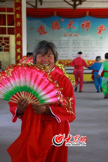 在龍泉鎮(zhèn)的河北崖村和馬家都村,“和諧、文明、美德”的氛圍尤為明顯。在河北崖村,村民們敲起了腰鼓歡迎采訪團(tuán)的到來(lái),平時(shí)舞锨弄鋤的村民穿上鮮亮的演出服,敲出歡快的鼓點(diǎn),顯得精神十足。旁邊的活動(dòng)室里,一群票友正在吹拉彈唱,自得其樂(lè)。鑼鼓聲吸引了村民們來(lái)“圍觀”,一些老人帶著馬扎、板凳圍坐在一起,一邊拉家常,一邊看表演,不時(shí)爆發(fā)出一陣陣的笑聲。